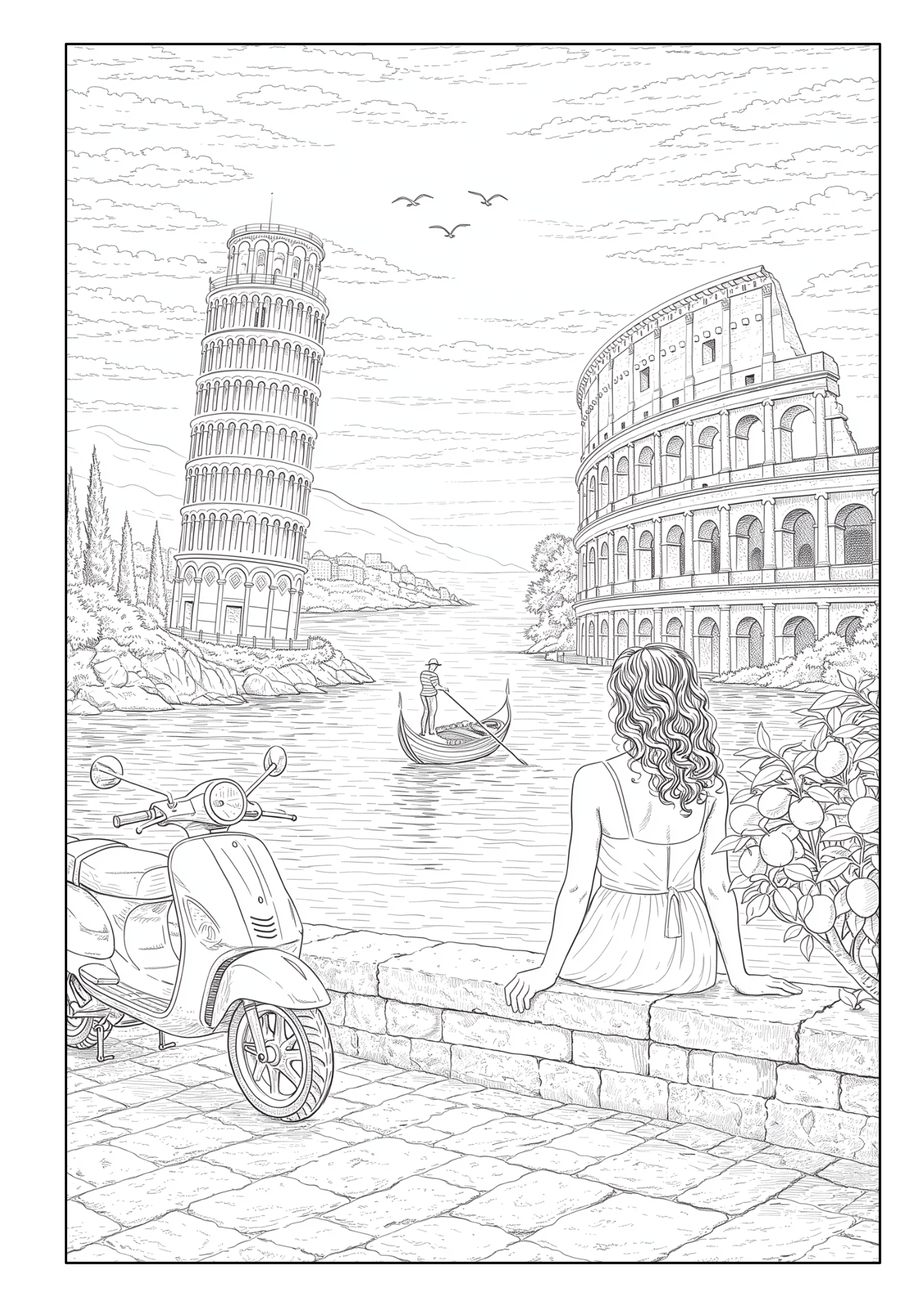 Dieses Malbuch vereint kulturelle Ikonen, historische Stätten, traumhafte Landschaften und italienischen Alltag in einer abwechslungsreichen Sammlung liebevoll gestalteter Motive. Jede Seite lädt dazu ein, Italien nicht nur zu sehen, sondern kreativ nachzuerleben 🎨.