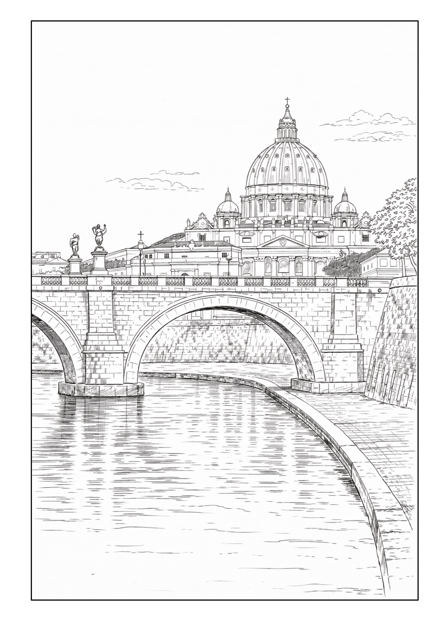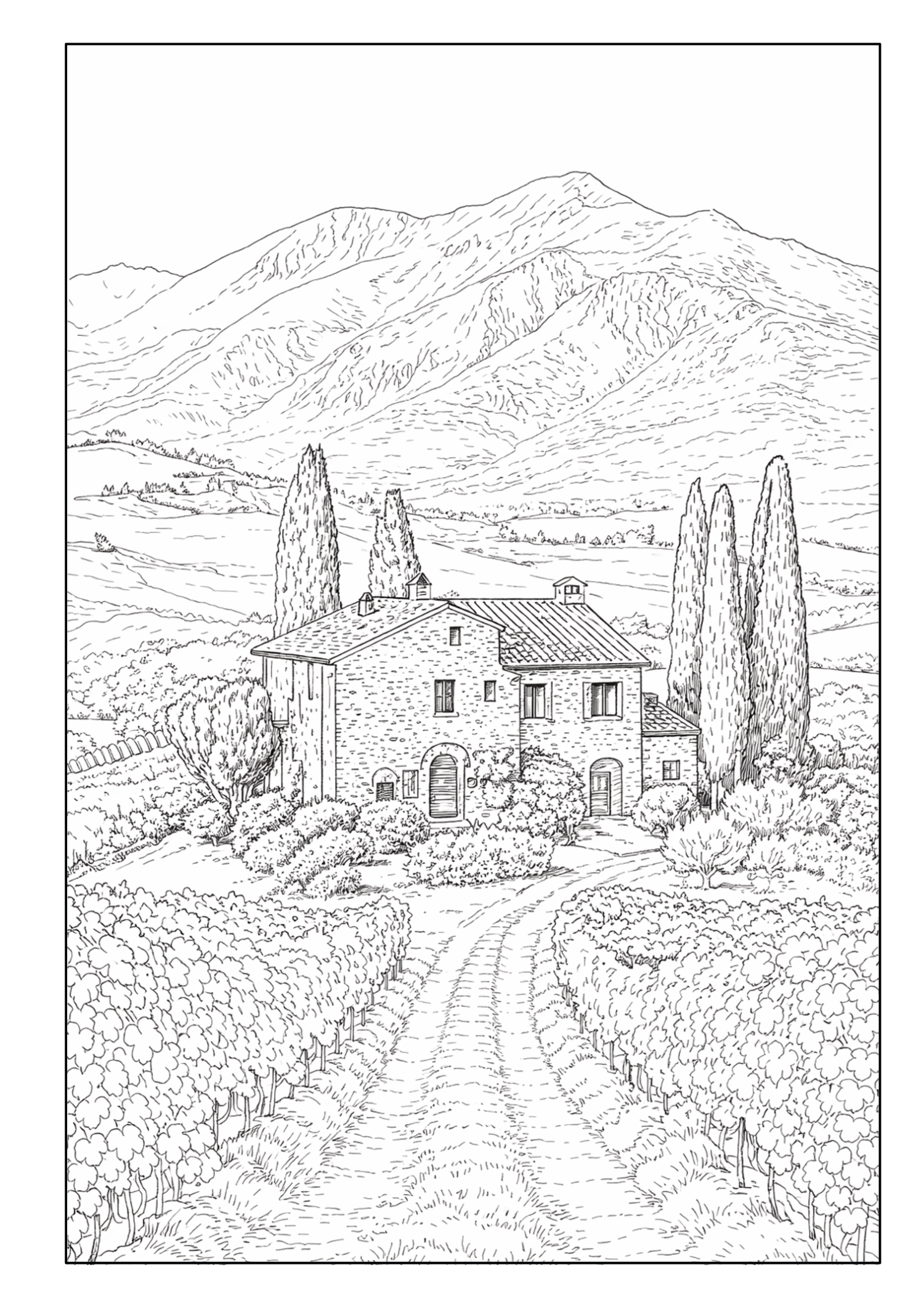 ✅ 50 vielfältige Ausmalmotive aus Architektur, Landschaft und Alltagskultur