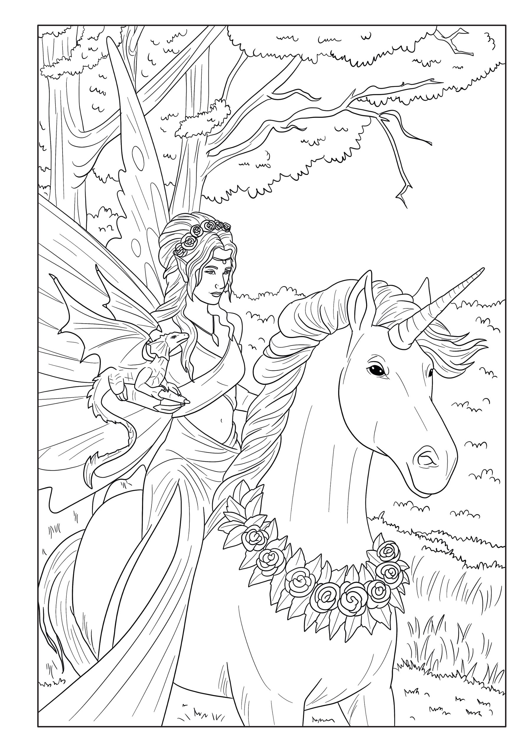 ✅ Über 50 fantasievolle Ausmalbilder – Fabelwesen, Elfen, Einhörner, Feen, Drachen & mehr