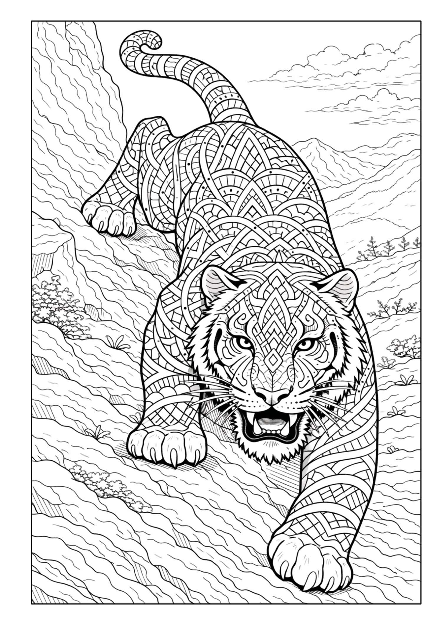 Ob die majestätische Präsenz eines Löwen, die wachsame Eleganz eines Luchses oder die kraftvolle Ausstrahlung eines Leoparden – jedes Motiv verbindet Tiere mit beruhigenden geometrischen Strukturen und eröffnet dir Raum für konzentrierte, kreative Entfaltung.