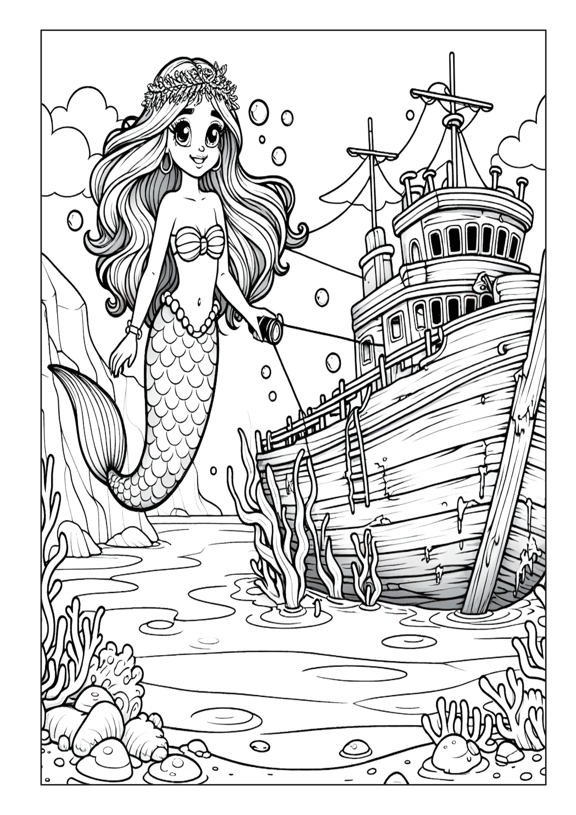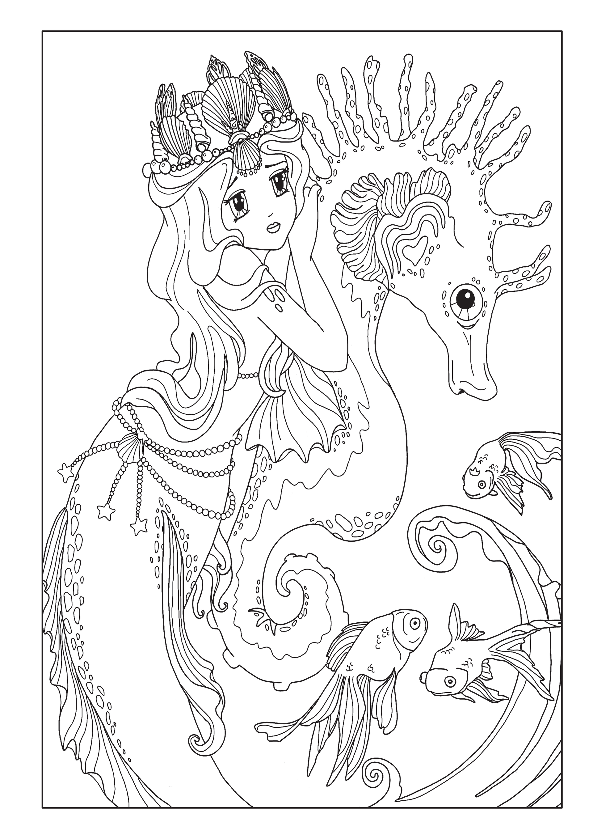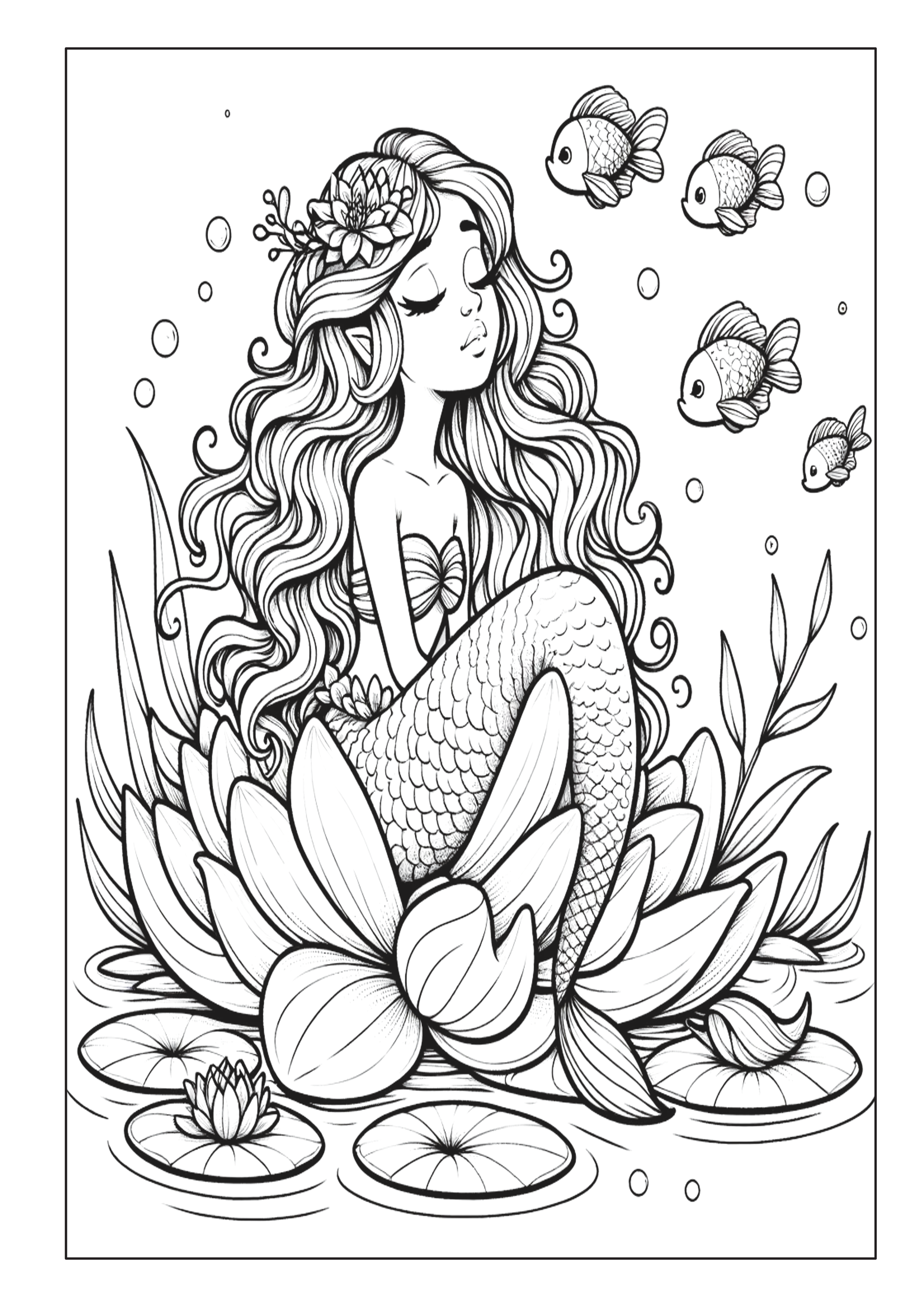 ✅ 50 fantasievolle Ausmalbilder – Magische Meerjungfrauen, schillernde Fische und verborgene Schätze.