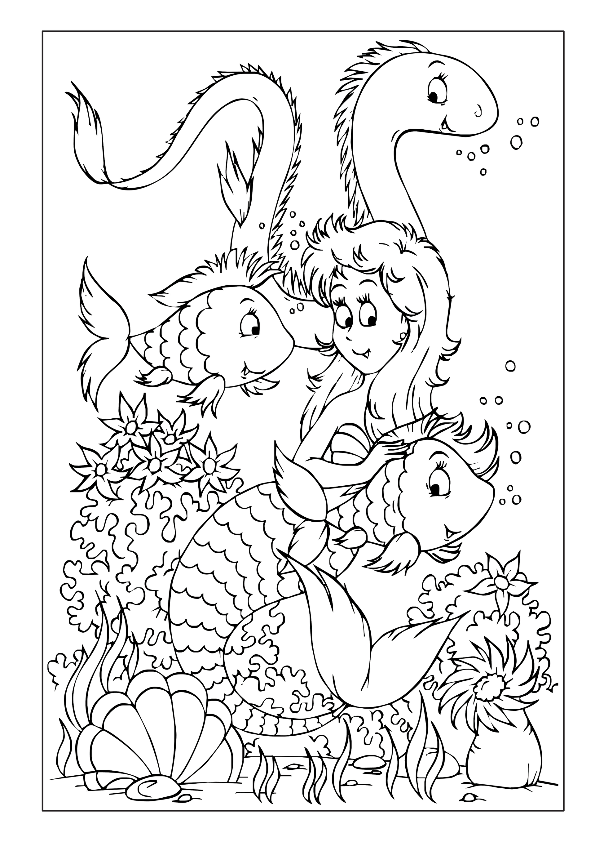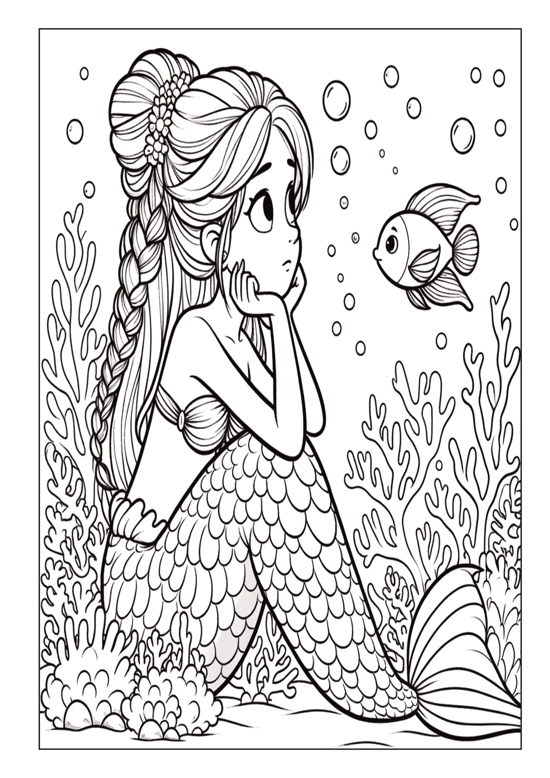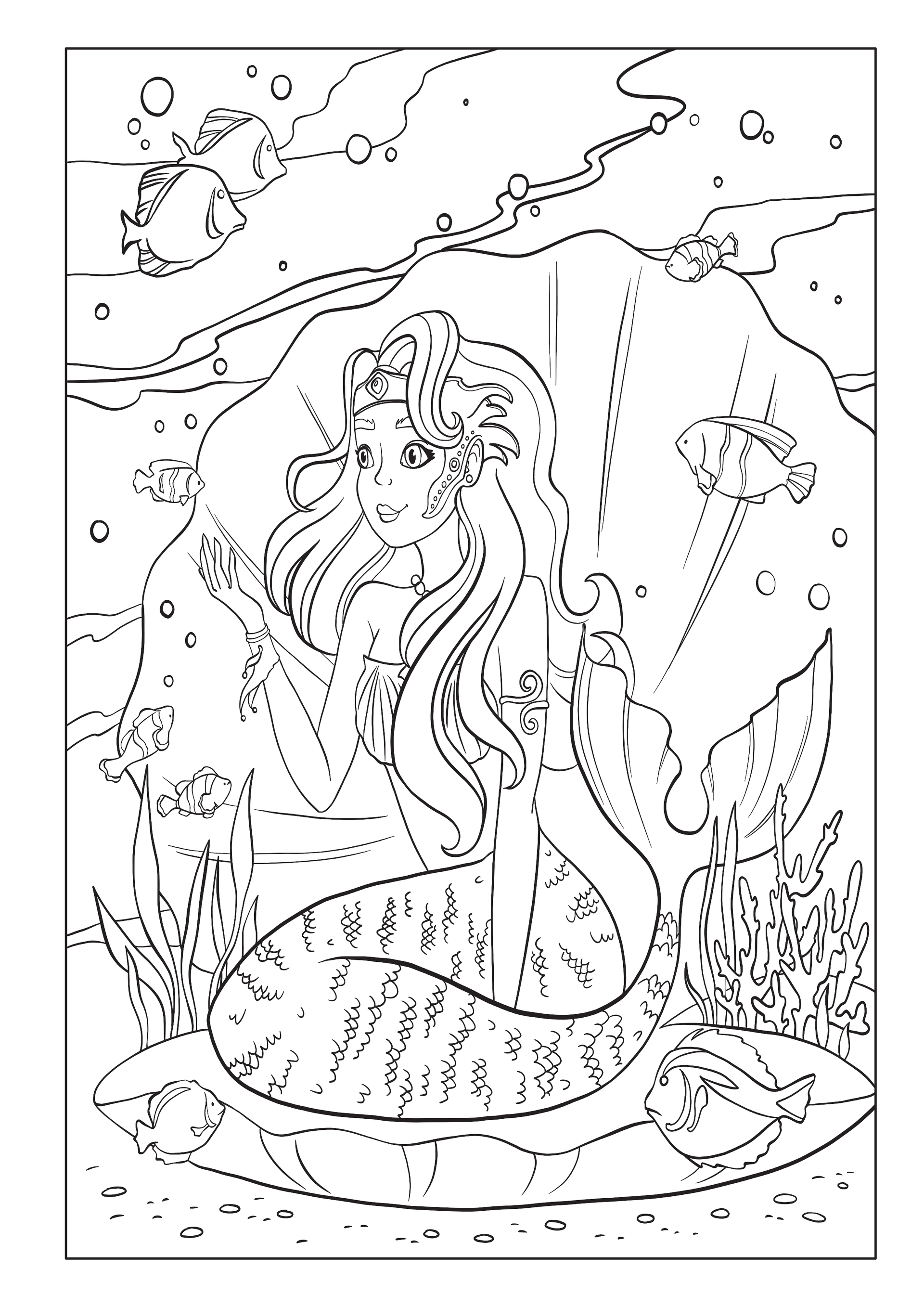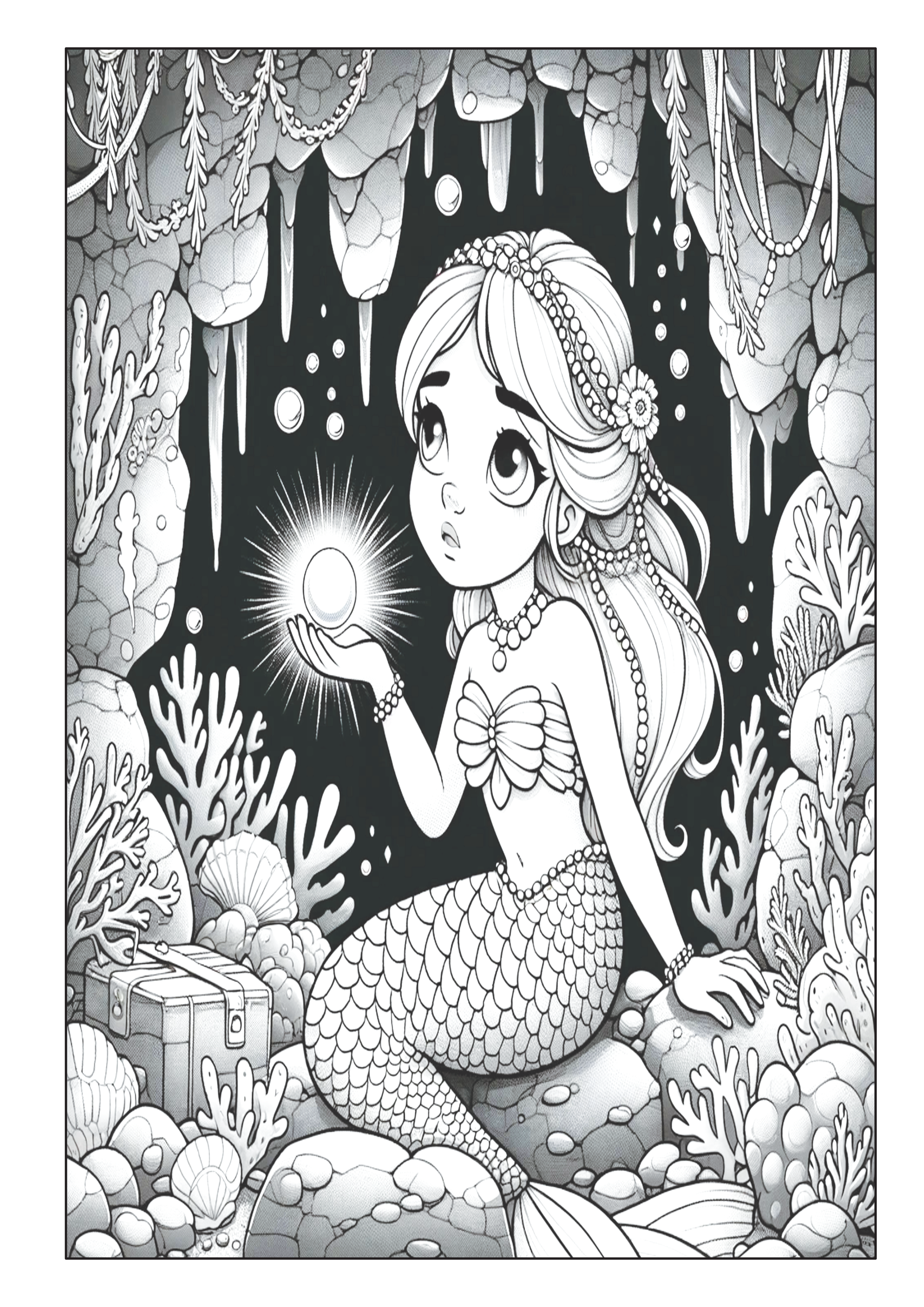 ✅ 50 fantasievolle Ausmalbilder – Magische Meerjungfrauen, schillernde Fische und verborgene Schätze.