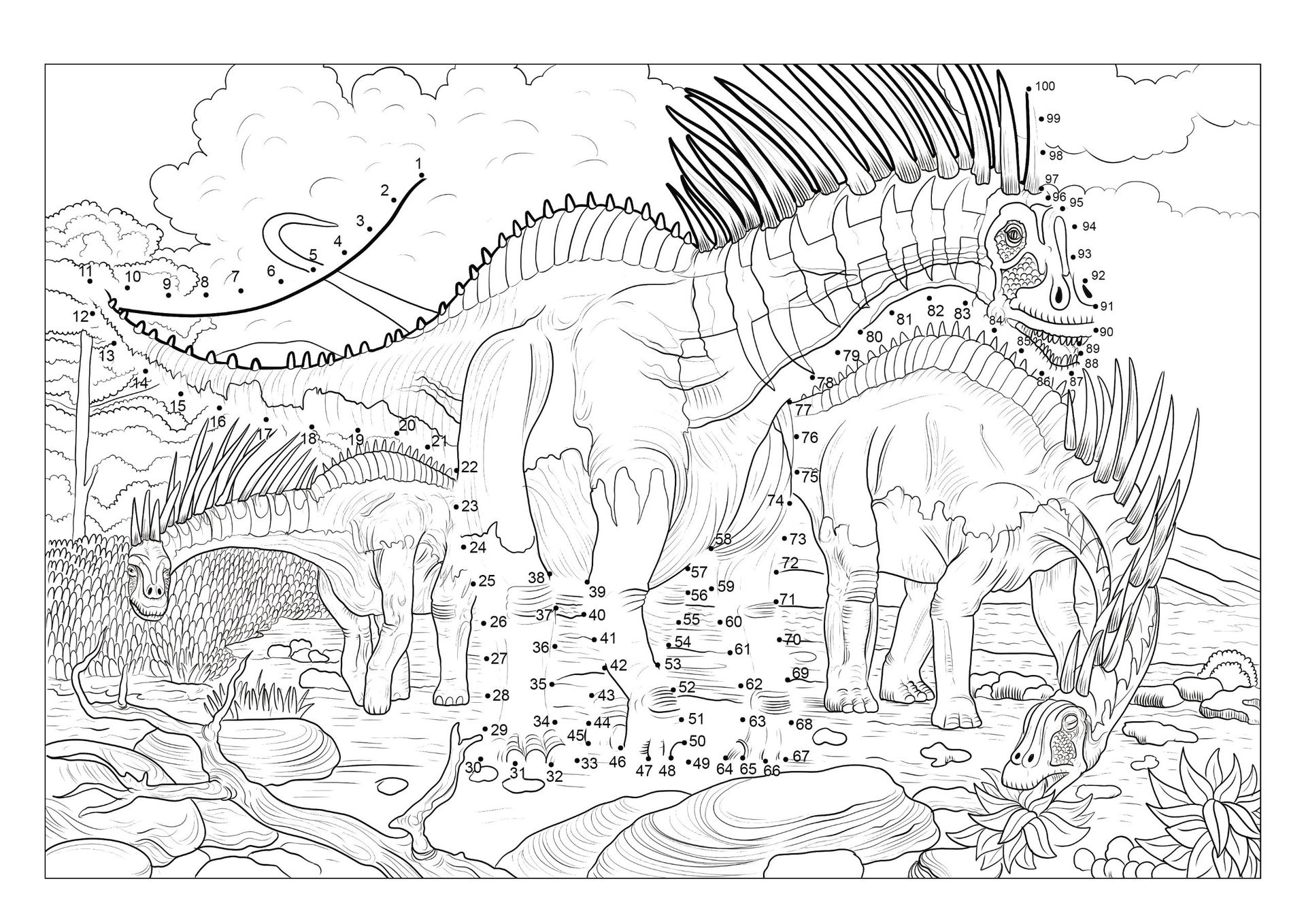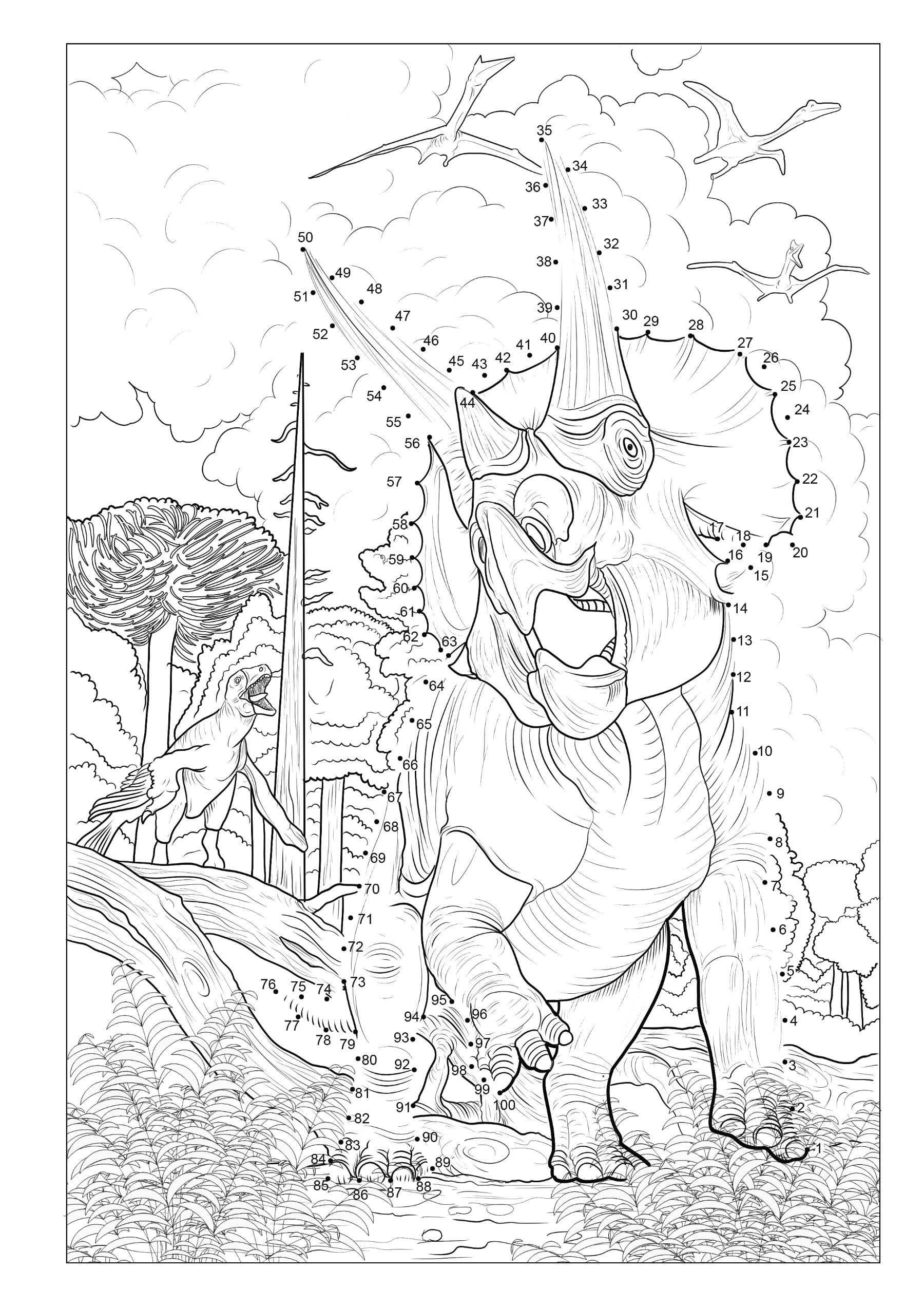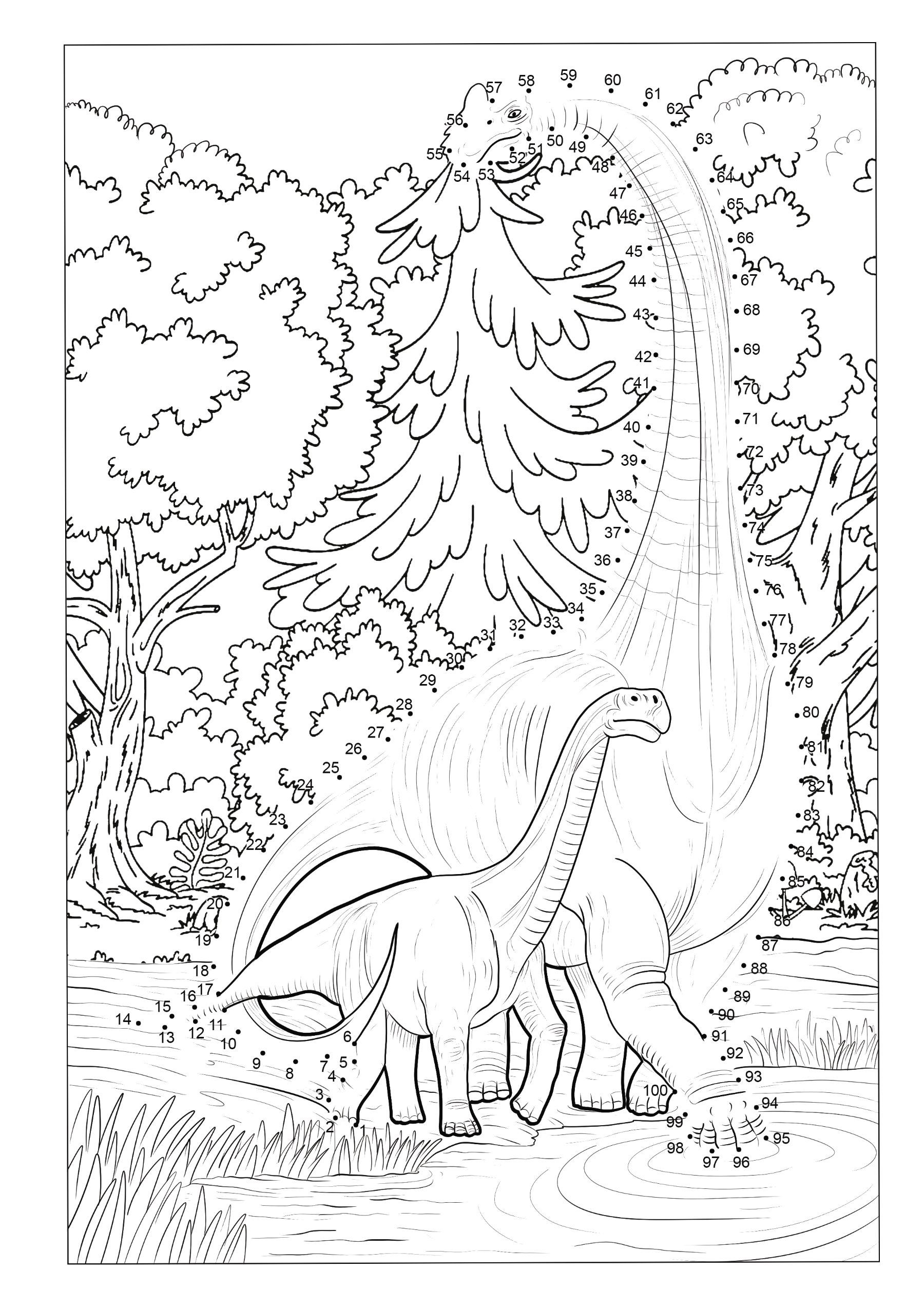 ✅ 50 Punkt-zu-Punkt-Ausmalbilder – Dinosaurier in ihrer urzeitlichen Umgebung